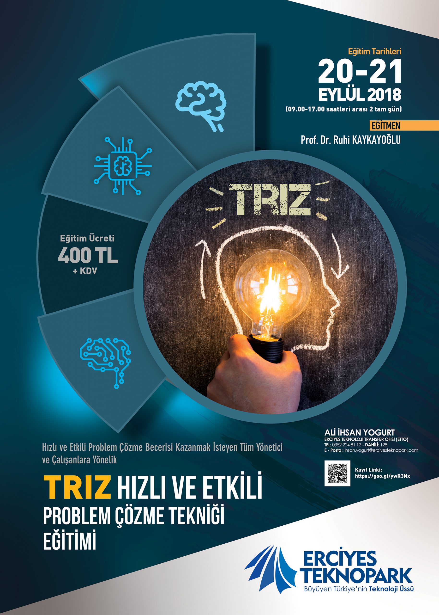 Erciyes Teknopark ve Erciyes Teknoloji Transfer Ofisi, Hızlı ve Etkili Problem Çözme Becerisi kazanmak isteyen tüm yönetici ve çalışanlara yönelik TRİZ: HIZLI VE ETKİLİ PROBLEM ÇÖZME TEKNİĞİ eğitimini alanında uzman Prof. Dr. Ruhi KAYKAYOĞLU tarafından Erciyes Teknopark Tekno 5 Oksijen Toplantı salonunda gerçekleştirecektir.