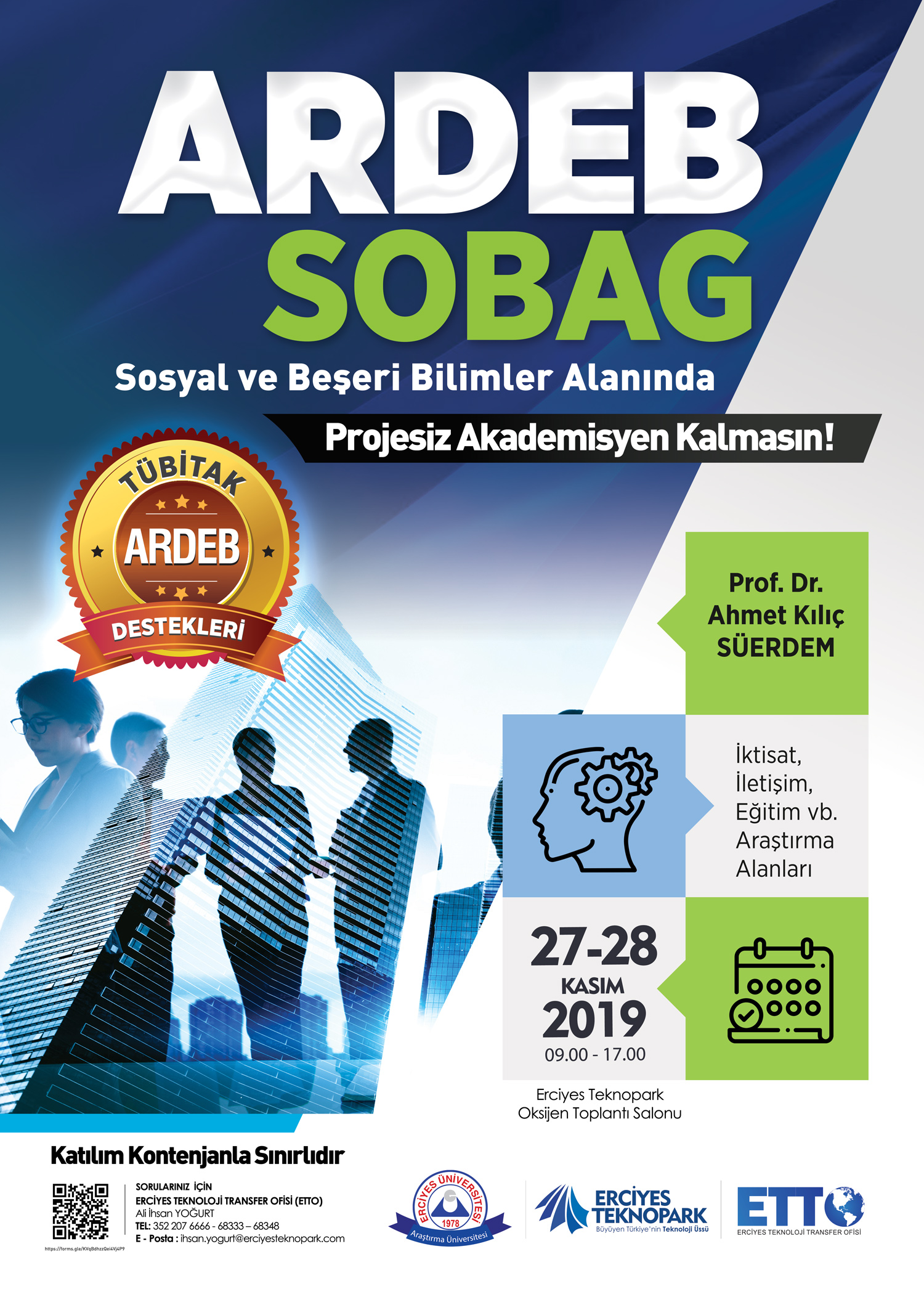 Değerli Araştırmacılar, Erciyes Teknoloji Transfer Ofisi (ETTO) tarafından düzenlenecek olan “ İktisat, İletişim Alanında Sosyal ve Beşeri Bilimler TÜBİTAK ARDEB Uygulamalı Proje Yazma Eğitimi’ne ” davetlisiniz.   Tarih: 27-28 Kasım 2019 Yer: Erciyes …